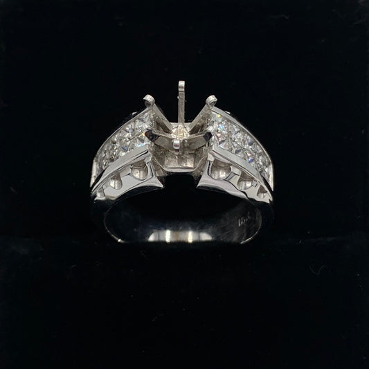 1.49 Ct. Princess Cut Semi-Mount Engagement Ring 18K White Gold