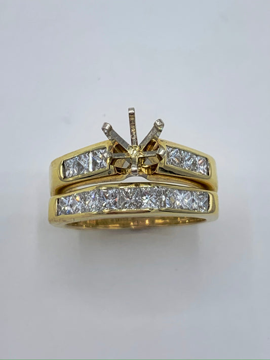 1.50 Carat Princess Cut Diamond Semi-Mount Wedding Set in 14K Yellow Gold
